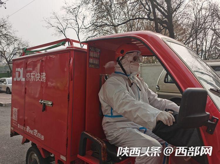 京東物流西北區(qū)西安興慶宮營業(yè)部小哥正在送貨