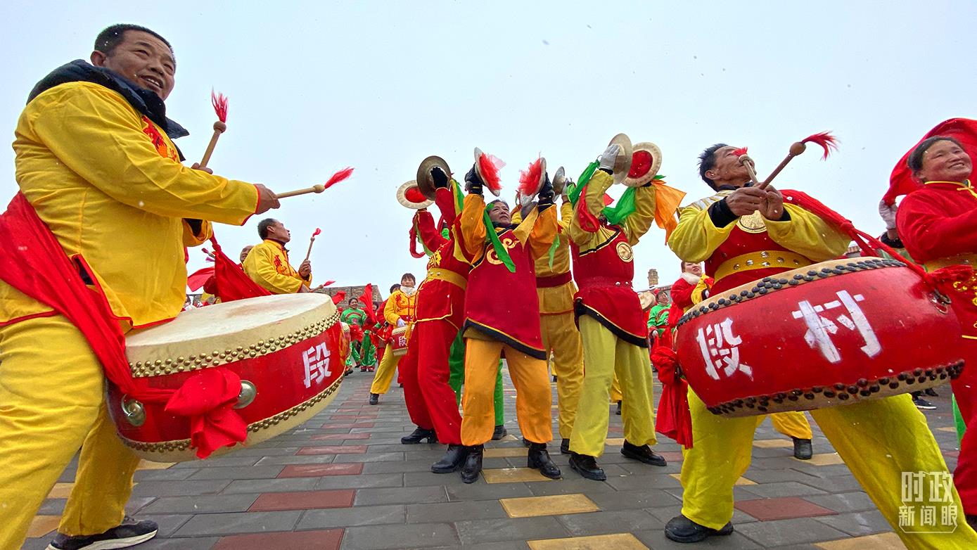 △段村威風(fēng)鑼鼓表演。(總臺央視記者郭曉龍拍攝)