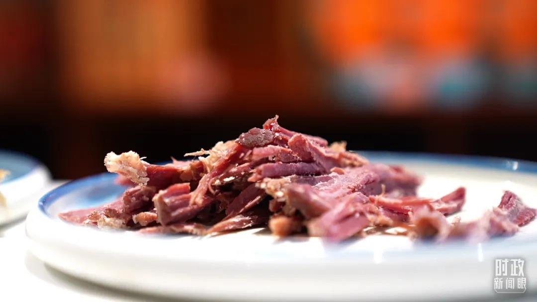 △平遙牛肉色澤紅潤,按口味分類有原味、五香味、麻辣味。(總臺央視記者曹亞星拍攝)