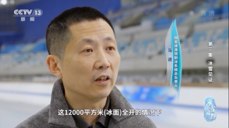 國家速滑館制冰系統(tǒng)負責人 馬進:這12000平米(冰面)全開的情況下,大概一年節(jié)約用電是在200萬度。