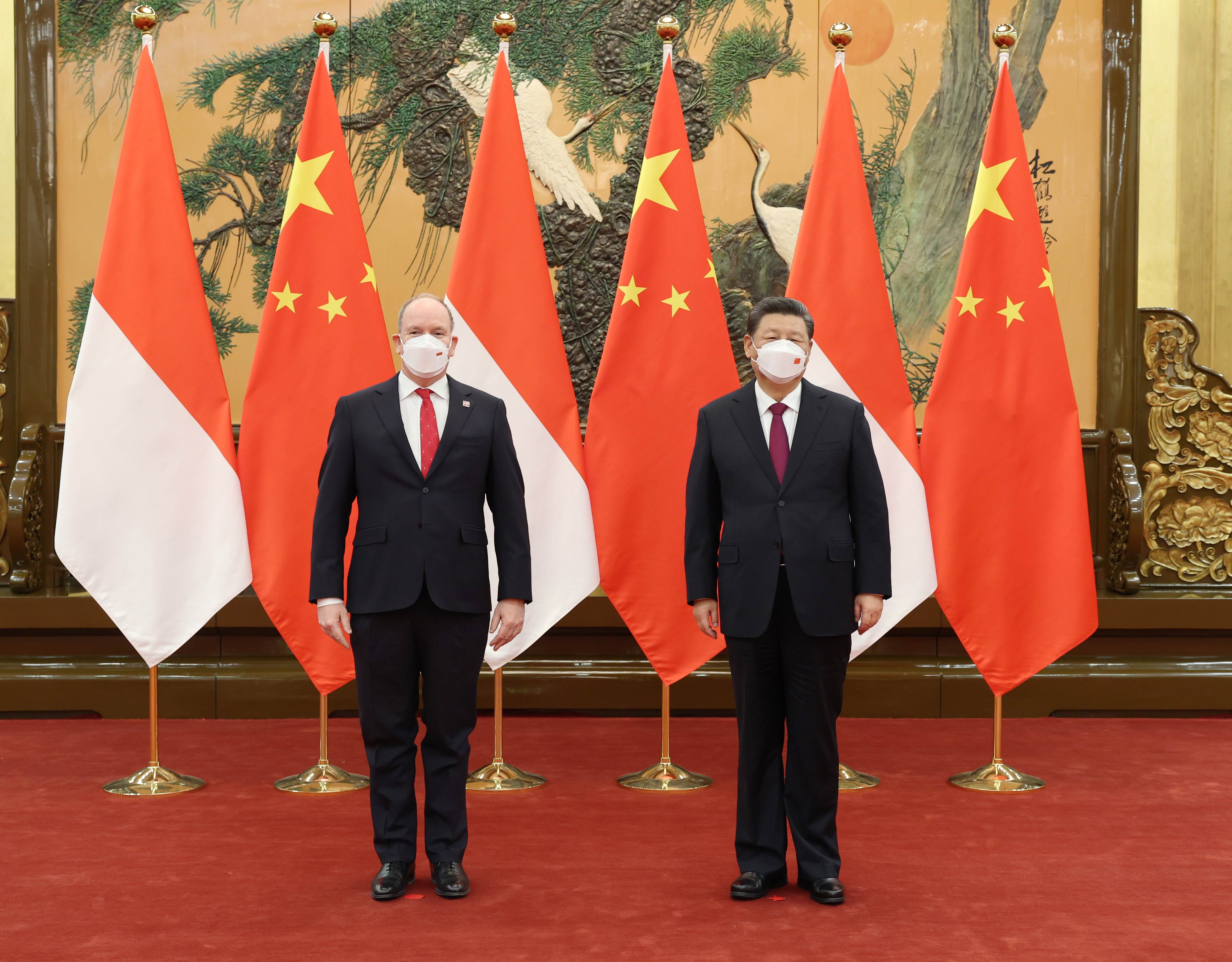 △2022年2月6日下午,國(guó)家主席習(xí)近平在北京人民大會(huì)堂會(huì)見(jiàn)摩納哥元首阿爾貝二世親王。