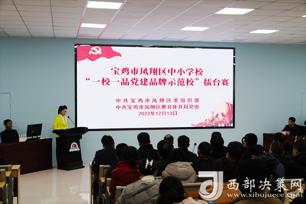 西部決策網(wǎng)訊(記者劉玉 韓宗憲)12月13日,寶雞市鳳翔區(qū)教體系統(tǒng)舉行中小學(xué)校“一校一品黨建品牌示范校”擂臺(tái)賽。鳳翔區(qū)委常委、組織部部長劉飛,區(qū)政府副區(qū)長王珍出席。各鎮(zhèn)教育總支書記,各中小學(xué)校黨支部書記、校長,直屬單位負(fù)責(zé)同志等150余人參加活動(dòng)。
