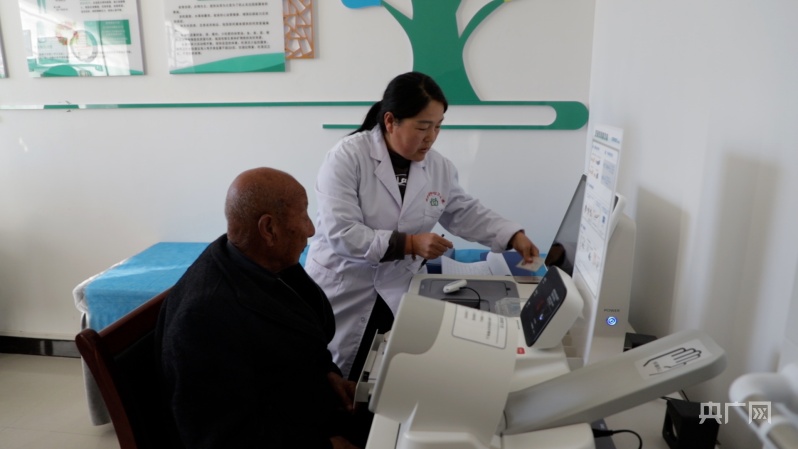 橫溝村健康小屋中,駐派醫(yī)生正在為老人檢查身體(央廣網(wǎng)記者 侯凱奇 攝)