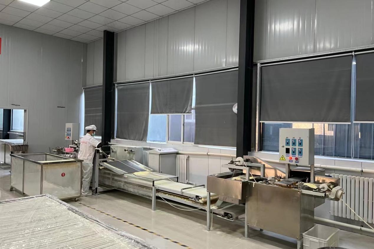 早晨8點半,磨面、和面、醒面、搓條、上面……在吳堡縣宋家川街道辦前廟山村的“掛面哥”加工廠里,現(xiàn)代化掛面生產(chǎn)車間機器轟隆的聲音此起彼伏,三十幾名婦女正手腳麻利地趕制一批空心掛面,濃郁的麥香撲鼻而來,呈現(xiàn)出一派忙碌的生產(chǎn)景象。村民張潤清已經(jīng)穿好工作服,戴上無塵帽、口罩和袖套,坐在工位前開始了一天的勞作。