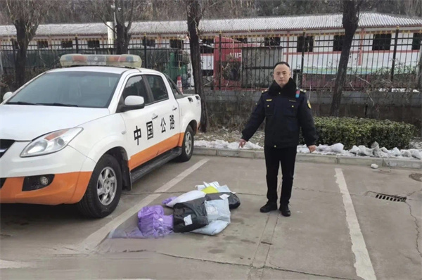近日,陜西交控西延分公司富縣安全路產(chǎn)中隊巡查員在日常巡查時,撿到中通快遞公司遺失包裹,送還及時,免遭投訴賠償2萬余元。