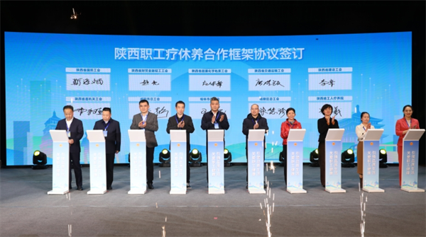 最后,陜西省工人療養(yǎng)院與省國防工會、省財貿(mào)金融輕工工會、省能源化學(xué)地質(zhì)工會、省交通運輸工會、省建設(shè)工會、省直機關(guān)工會等18家單位就療休養(yǎng)合作框架協(xié)議集中進行簽約。