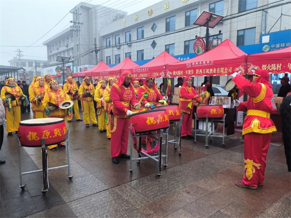 上午九時(shí),活動(dòng)現(xiàn)場人聲鼎沸,熱鬧非凡。省級(jí)非物質(zhì)文化遺產(chǎn)項(xiàng)目“槐原戰(zhàn)鼓”氣勢(shì)恢宏,擂響了煙火陳村促經(jīng)濟(jì),家鄉(xiāng)年貨帶消費(fèi)的新征程。