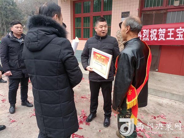 西部決策網(wǎng)訊 春節(jié)前夕,勉縣退役軍人事務(wù)局、勉縣定軍山鎮(zhèn)武裝部一行到轄區(qū)榮立三等功的現(xiàn)役軍人王寶山家中,向其家屬送上王寶山的立功喜報(bào)和慰問金,對(duì)王寶山在部隊(duì)里取得的優(yōu)異成績(jī)表示祝賀。