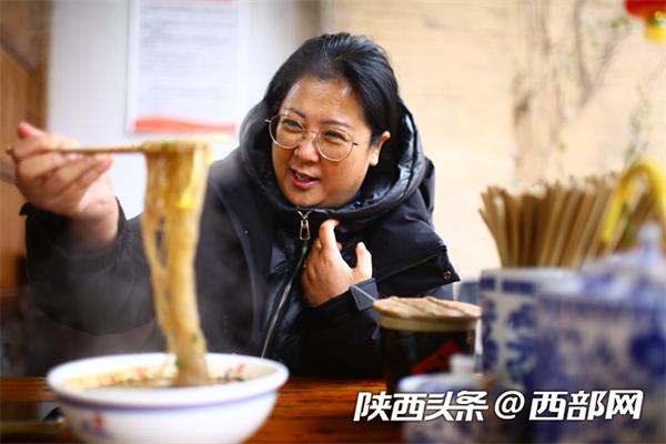 2月6日中午11點(diǎn)鐘,咸陽(yáng)市禮泉縣袁家村里,已經(jīng)擠滿了慕名而來(lái)的四方游客,人們帶著對(duì)鄉(xiāng)村美食的好奇,在這里吃得津津有味,穿著時(shí)髦的姑娘舉著甑糕邊走邊吃:“關(guān)中小吃,這里味道最好。”